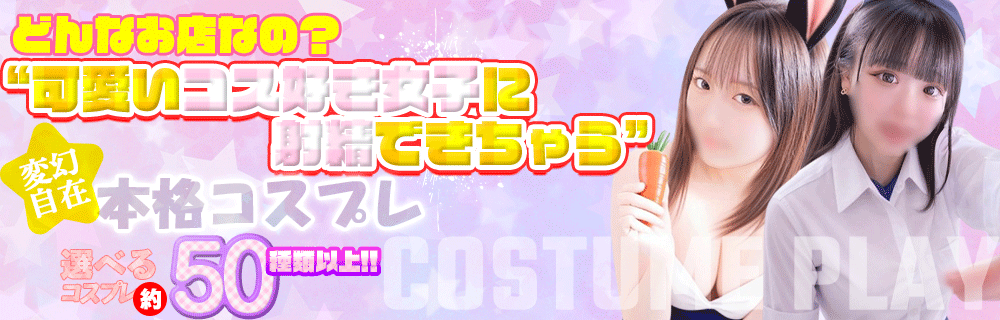 20種類以上の多彩なコスプレをご用意!こだわり抜かれたコスチュームに身を包んだ、エロくかわいい女の子たちが、貴方の欲求を大いに満たします♡さらに、ニーハイソックスやガーターベルトなどの細部のパーツをオーダーできる、特別カスタムもおススメ!しかも、、、コスプレを着たままご奉仕♪(着衣プレイОK(*ノωノ))清楚、ロリ、ギャル、巨乳、お姉さんなど、お好みの女の子にお好みのコスプレを着せちゃってください!お客様のお客様によるお客様のためのオンリーワンのひと時をお過ごしください♪