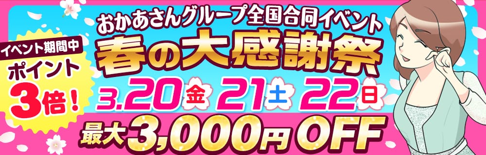 【最大3千円OFF!】おかあさんグループ春の大感謝祭(3/20~3/22)開催