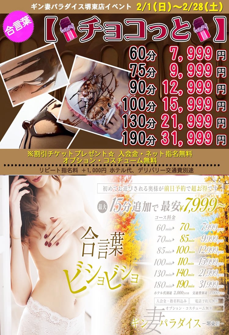 | 店名 | ギン妻パラダイス 堺店 | ||