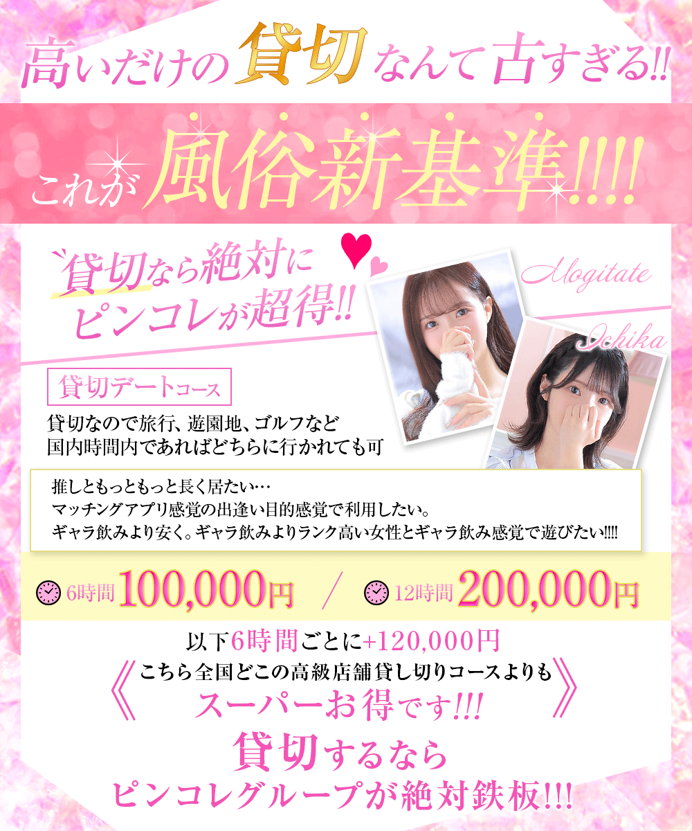 可愛い女の子と遊ぶなら『ピンクコレクション大阪店』は外せないでしょう。同店には20代前半を中心に、今どきの可愛い子が集まるデリヘル店。どの子もアイドルやタレントに見まがうほどのレベルです。女の子一覧を見て驚く方も少なくないんだとか!どの女の子と遊ぶか迷う時間も楽しいですよね。在籍数も出勤数も安定しているといいますから、ムラっとしたときに可愛い女の子と遊べるのは同店の魅力と言えるでしょう。60分10,000円台で遊べるというのは、もはや感動レベル。ごっくんや聖水、AF、黄金といったオプションも多数揃っていますから、可愛い理想の女の子とアブノーマルプレイも楽しめちゃいますよ。