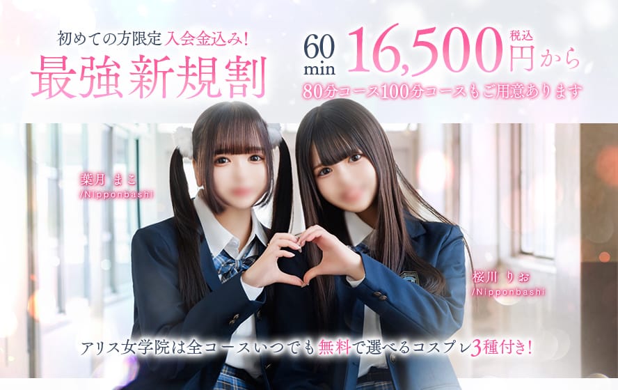 ★最強アリスの日★ パネル指名料・ご予約料込々!! 60min 12,000円(税込み13,200円) 80min 15,000円(税込み16,500円) 100min 19,000円(税込み20,900円) 120min 24,000円(税込み26,400円) ※合言葉『最強アリスの日』とお伝えください。 ※ホテル代2400円~ ※東山安井エリア交通費無料