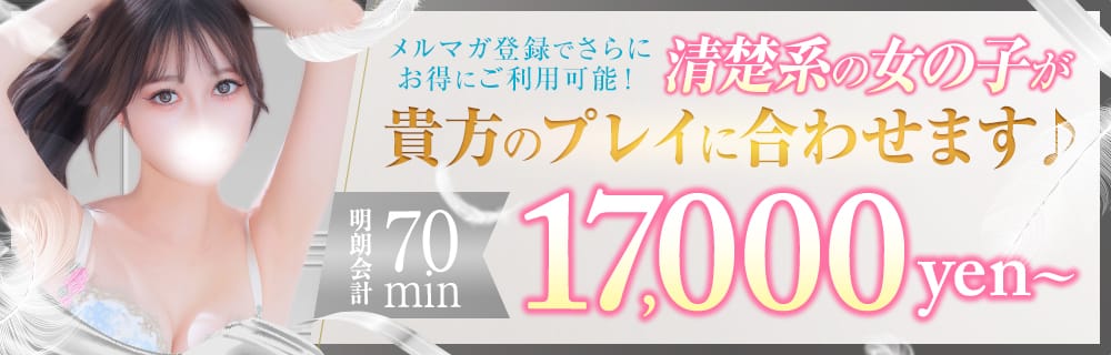 業界未経験の素人美少女を厳選しているお店!素人ならではの恥じらいや時折見せるウブな表情など、素人好きの男性にとっては「最高のご褒美」となるでしょう!!可愛い系、ロリ・妹系、キレイめ清楚まであらゆる男性のニーズに合うように様々な女の子が勢揃いしているから嬉しい!!在籍女性だけでなく、スタッフの対応についても「親切・丁寧・元気」をモットーにお客様に寄り添った親身な電話対応が評判です!後悔しないお店選びになることをお約束!