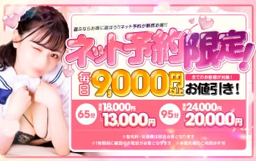 ♡NET予約が♡パワーアップ♡ 近隣ホテルでのご利用なら グ~~ンとお得♡ 65分 13000円 95分 20000円 ※込み合った場合65分コースは 遠方への派遣が難しい場合がございます! ※指名料・交通費は別途必要となります! ※本指名様のご利用は致しかねます! ※1時間前に必ず確認のお電話をお願いします! ※他にも特別なイベントをご用意しています!