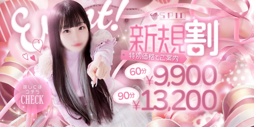 20代の可愛い系の女の子とコスパよく遊びたいなら『鶯谷スピン』が見逃せません!同店の特徴はなんと言っても女の子!在籍の傾向としてあまり遊び慣れていなさそうな清楚系の子が多いんです。在籍一覧を見てみても、その「身近にいそうな雰囲気、でも可愛い!」という容姿が分かるでしょう。それいで同店は料金設定がかなり良心的!60分や90分は1万円台で遊べますが、おすすめはロングコース!長ければ長いほどコスパの良さを実感でるでしょう。オプションも充実しているので、ぜひ色々試してみてくださいね!