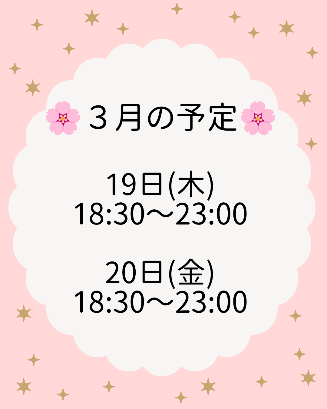 次回22時頃〜のご案内♡