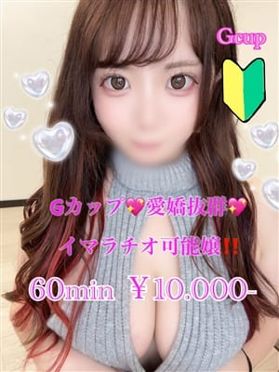 腰が抜ける、快感地獄巨乳ファンの皆様!!必見!!この娘を見てしまった以上触らずにはいられないハズ・・・♪若さならではの好奇心も旺盛で…Gカップの美乳をくっつけながら甘えてくる姿に興奮を覚えない男性はいないでしょう!手から溢れんばかりの胸を揉みながら優しく愛撫してあげると、、、敏感体質で・・・!可愛らしいお顔が徐々に色気を帯びて恥ずかしながらも徐々に大胆になってくる姿に興奮してしまいます。イチャイチャ恋人気分♪ピチピチ好感度抜群!恋人気分を堪能したいのならこの娘で絶対間違い無いです!顔を赤くして感じている姿もじっくりご覧ください♪こんなに綺麗で可愛い子とイチャイチャできるなんて想像しただけでたまんないですね~☆