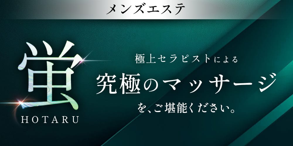 セラピストの技術が光る、と話題のお店が『蛍-HOTARU-』です。同店のセラピストはきめ細やかな繊細な技術が自慢。優しく触れられつつもツボをしっかり抑えてくれるようなので、身体の疲労感はしっかり解れるでしょう。しかもセラピストは母性溢れる30代・40代がメイン。愛情たっぷりの包み込まれるような癒やしを提供してくれるため、きっと精神的にも癒されるはずです……!オプションの心配もなく、分かりやすい料金体系なのでメンズエステ初心者さんも利用しやすいのではないでしょうか?