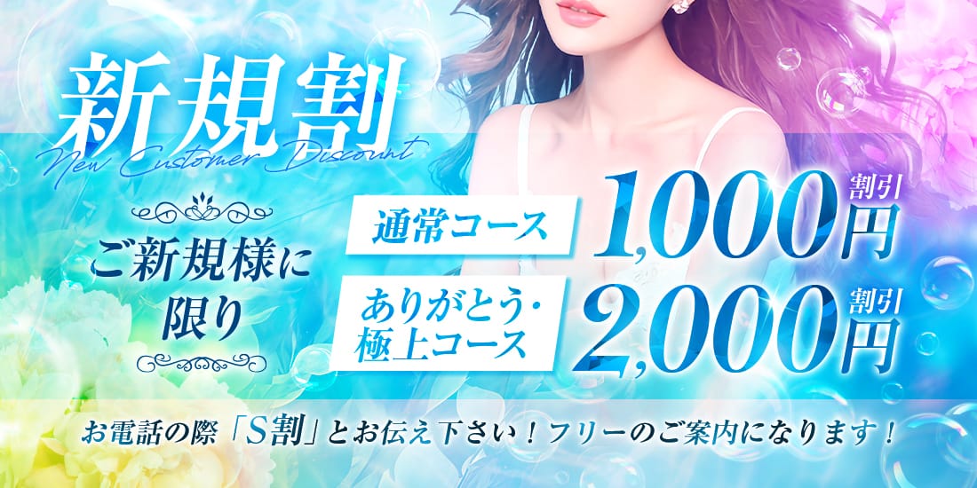 ご新規様限定でコース料金から2000円オフ!お電話の際に【S割】と伝えてください!