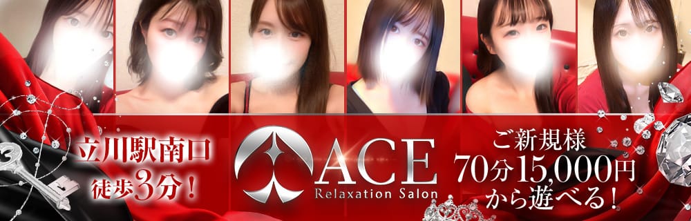 立川エリアにある『Relaxation Salon ACE』は、セラピストと施術に自信があると言います。厳選された20代の女性が在籍しており、目を見張るほどの美しさに心を打たれるでしょう。また施術に使うオイルも高級というので、贅沢気分を味わえるはず。そのうえオプションにはディープリンパやホットオイルなどもあります。癒やしレベルをアップグレードしたい方にはうってつけではないでしょうか?オイル増量でよりセレブ感を体験できるとなれば、利用しない手はないでしょう。